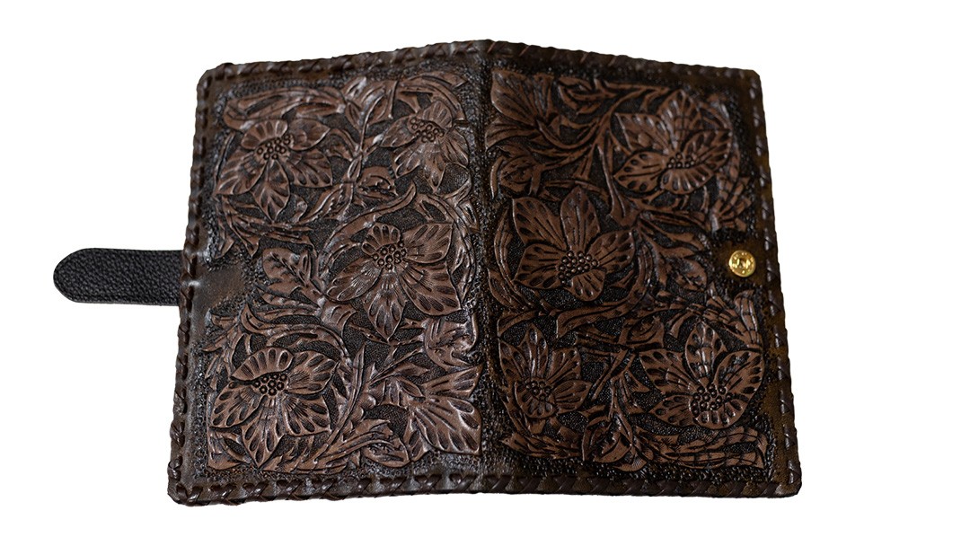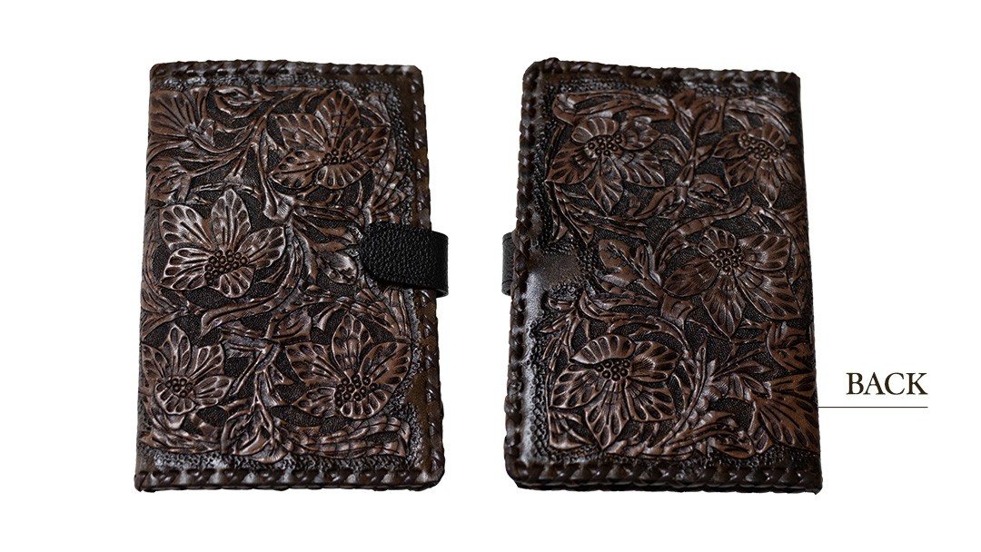 - 【 限定 1品 】【 ハンドメイド 】牛革カードケース ハナミズキ柄 小物入れ 革 パスポート ケース 薬 一点物 手作り 革小物 革製品 牛革 花 植物