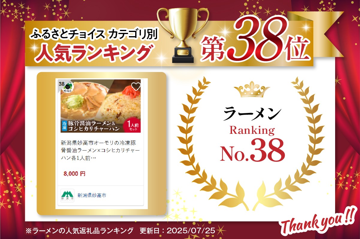 - 新潟県妙高市オーモリの冷凍豚骨醬油ラーメン×コシヒカリチャーハン各1人前セット