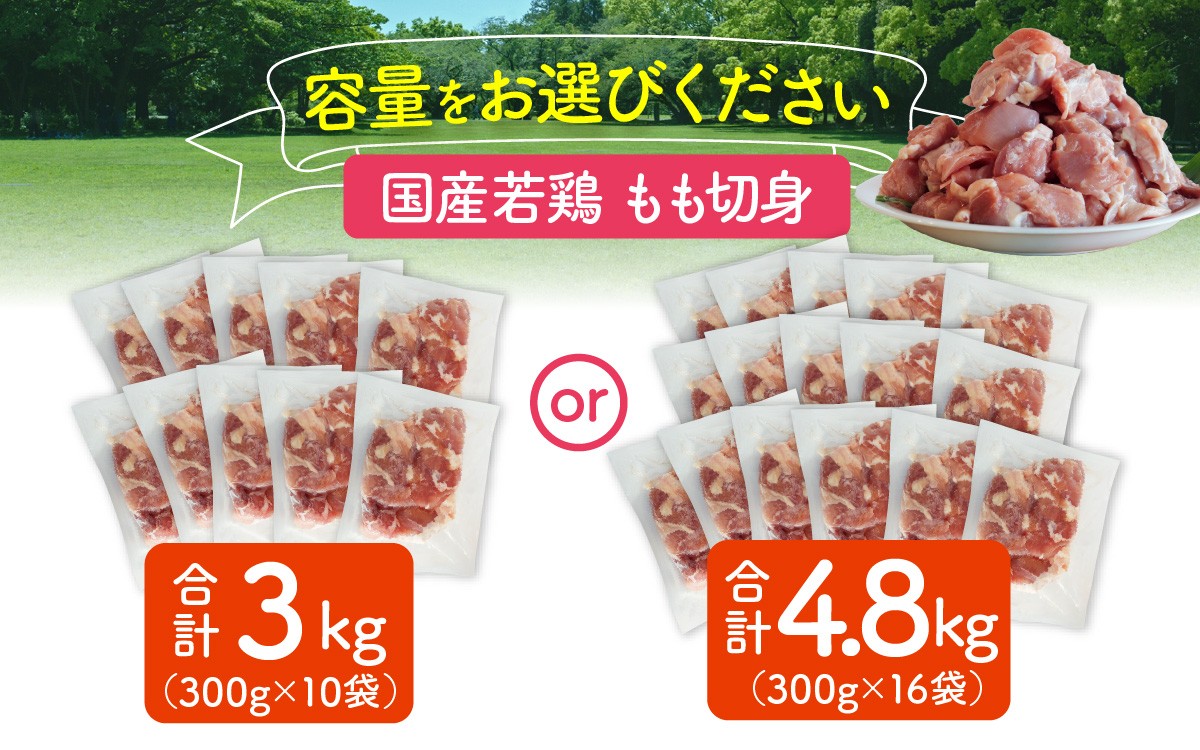 【選べる容量】KITO 国産若鶏もも肉(ひとくちカット・小分け冷凍)300g×10パック~16パック 合計3kg~4.8kg / チキン モモ肉 鶏肉 鶏 鳥肉 冷凍 時短調理 切り身 切身 小分け パック からあげ カット済み 高たんぱく 低カロリー 真空パック 3キロ 4.8キロ ふるさと納税