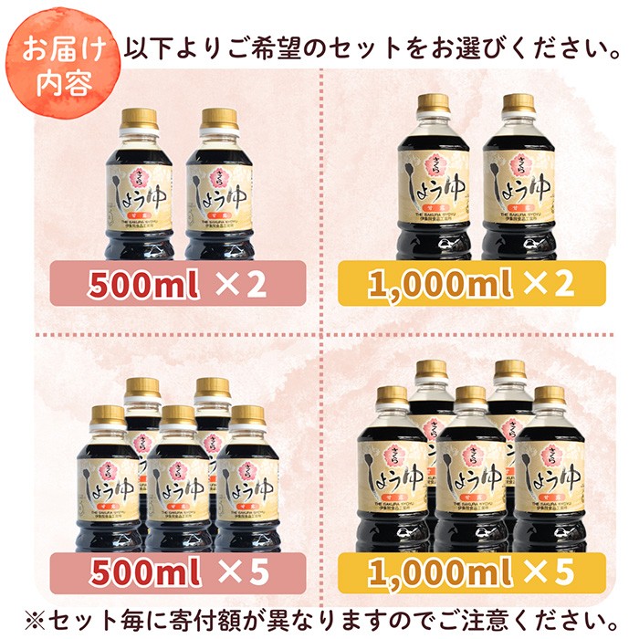 - No.1136/No.1169/No.1170/No.690 <容量・本数が選べる>さくらしょうゆ・甘露(500ml×2本~5本) (1000ml×2本~5本) 九州 鹿児島 しょうゆ 醤油 しょう油 正油 調味料 甘口醤油【伊集院食品工業所】