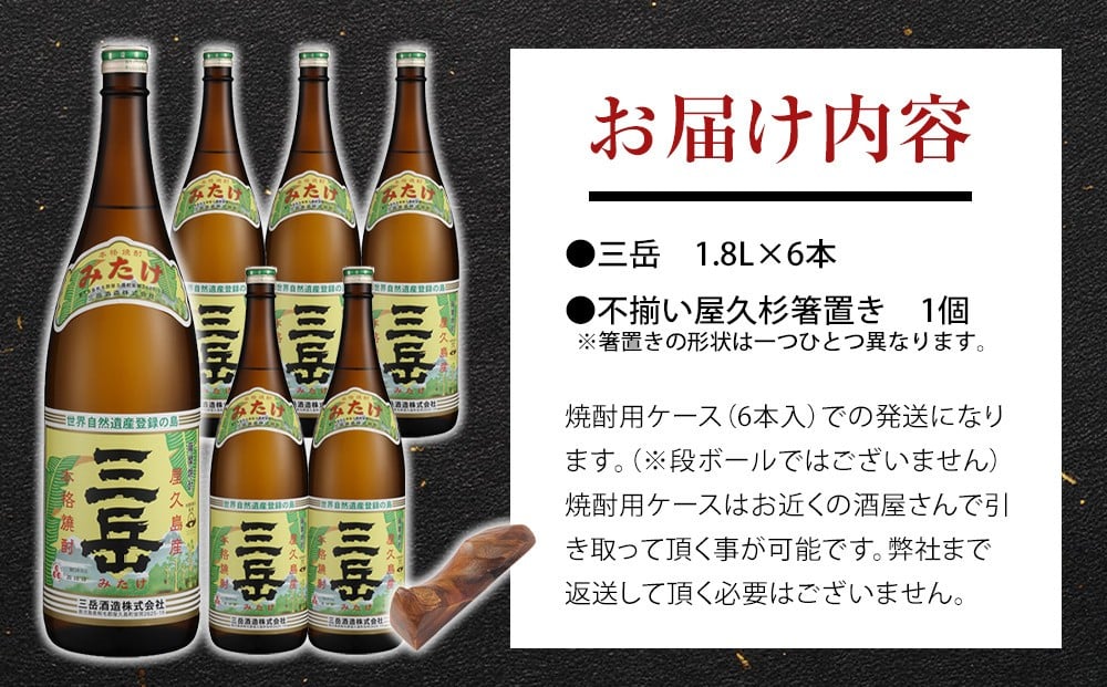 三岳1.8L 6本セット(プラスチックケース)+不揃い屋久杉箸置き 1個