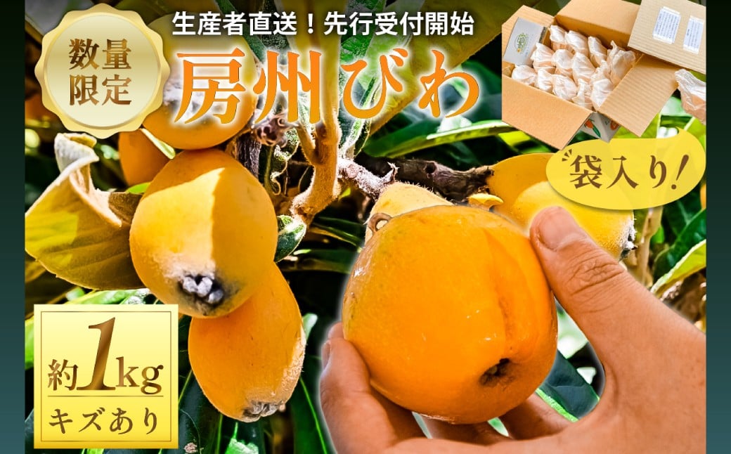 【2025年5月下旬~6月中旬発送予定】≪訳あり≫ 生産者直送 房州びわ1キロ袋入り(多少きずあり) mi0044-0013