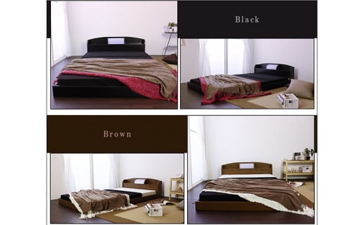 - 【組立サービス付】190 セミダブルサイズ 棚照明付フロアベッド 国産ボンネルコイルマットレス(10816B)付(1416)