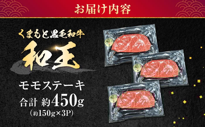 - <訳あり・在庫過多>熊本県産 A5等級 黒毛和牛 和王 モモ ステーキ 約150g×3P 計約450g 牛肉 【帝神志方ミート 株式会社】 牛 肉 もも モモ肉 A5 和牛 国産 熊本 [AYCH007]