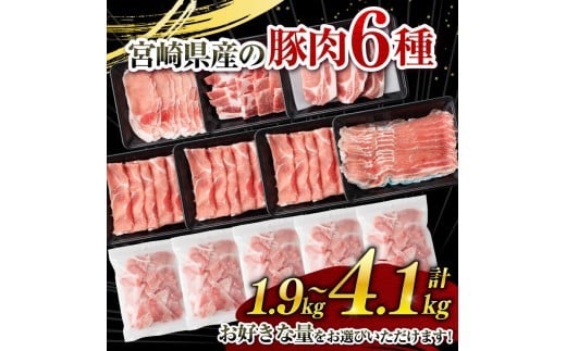 テレビで紹介されました! ※発送時期・グラムが選べる※ 宮崎県産 豚肉 6種 1.9kg~4.1kg 【 国産 宮崎県産 豚 ぶた スライス 肉 ロース バラ とんかつ 焼肉 】