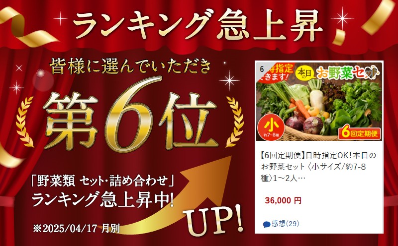 - 【6回定期便】日時指定OK!本日のお野菜セット 〈小サイズ/約7-8種〉 野菜詰め合わせ 有機栽培 野菜 定期便 果物 野菜セット 野菜定期便 6回 6ヵ月 野菜定期 産地直送