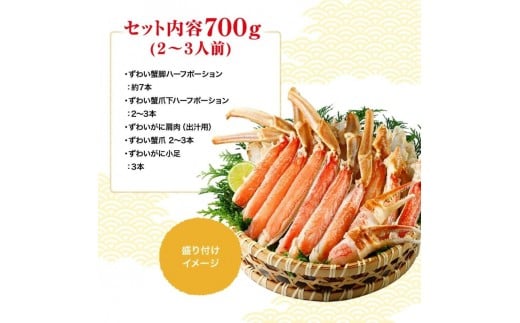蟹 ハーフポーション 生ずわいがに 700g 2-3人前 爪 脚 刺身可 かに 刺し身 鮮度抜群 食べやすい 蟹しゃぶ しゃぶしゃぶ 生ズワイガニ 鍋 焼き蟹 カニ料理 かに刺 かに雑炊 かにすき 人気 おすすめ 冷凍 ずわい蟹 ふるさと納税 カニ かにしゃぶ 魚介類 海鮮 グルメ ポーション お取り寄せ 送料無料 兵庫県 神戸市