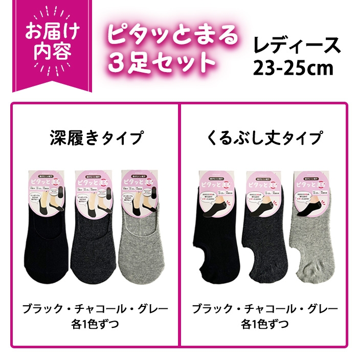 - <選べるタイプ>レディース ピタッとまる 3足セット(深履きタイプ/くるぶし丈タイプ) 【m80-01】【アシスト】