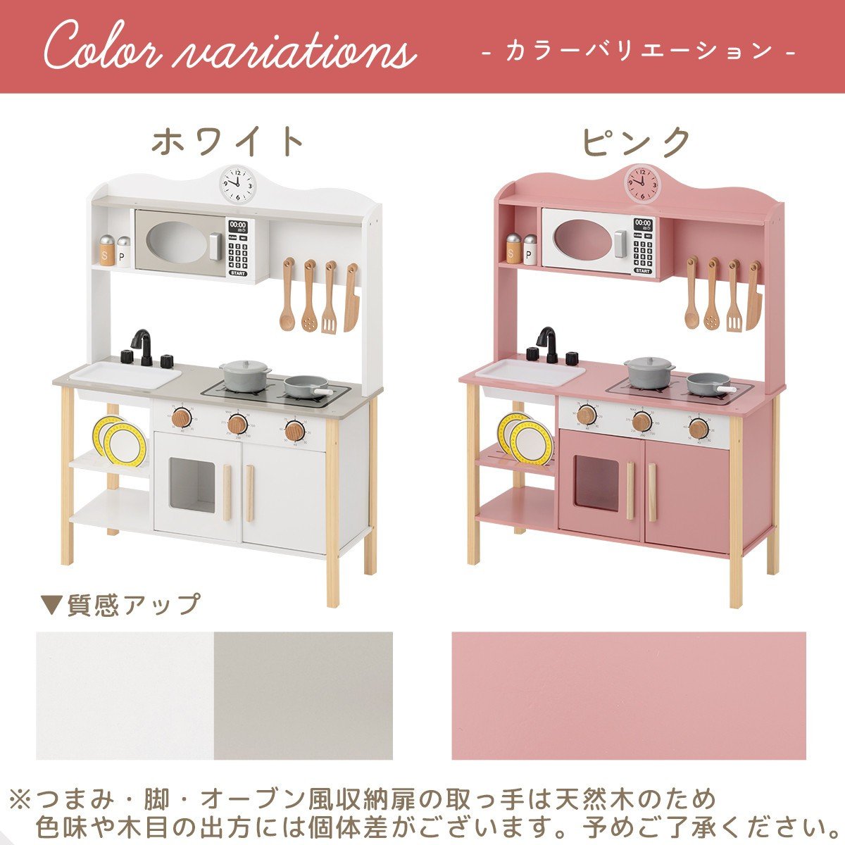 - 【完成品でお届け】おままごとキッチン 電子レンジ・オーブン付き(選べる2色)おままごと キッチン おままごとキッチン コンパクト 約 幅68 奥行26 高さ90 おもちゃキッチン 木製 電子レンジ付 棚 EKANTC001707