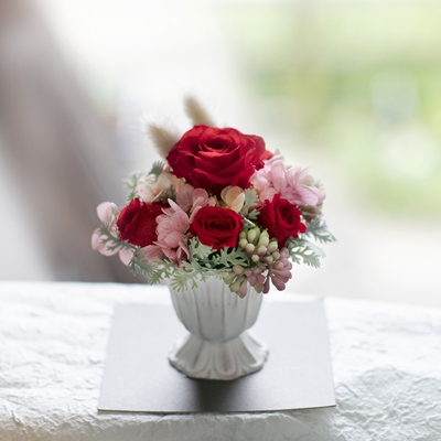- 赤薔薇・ピンク紫陽花のプリザーブドフラワーアレンジメント(クリアケース付き)【1116517】