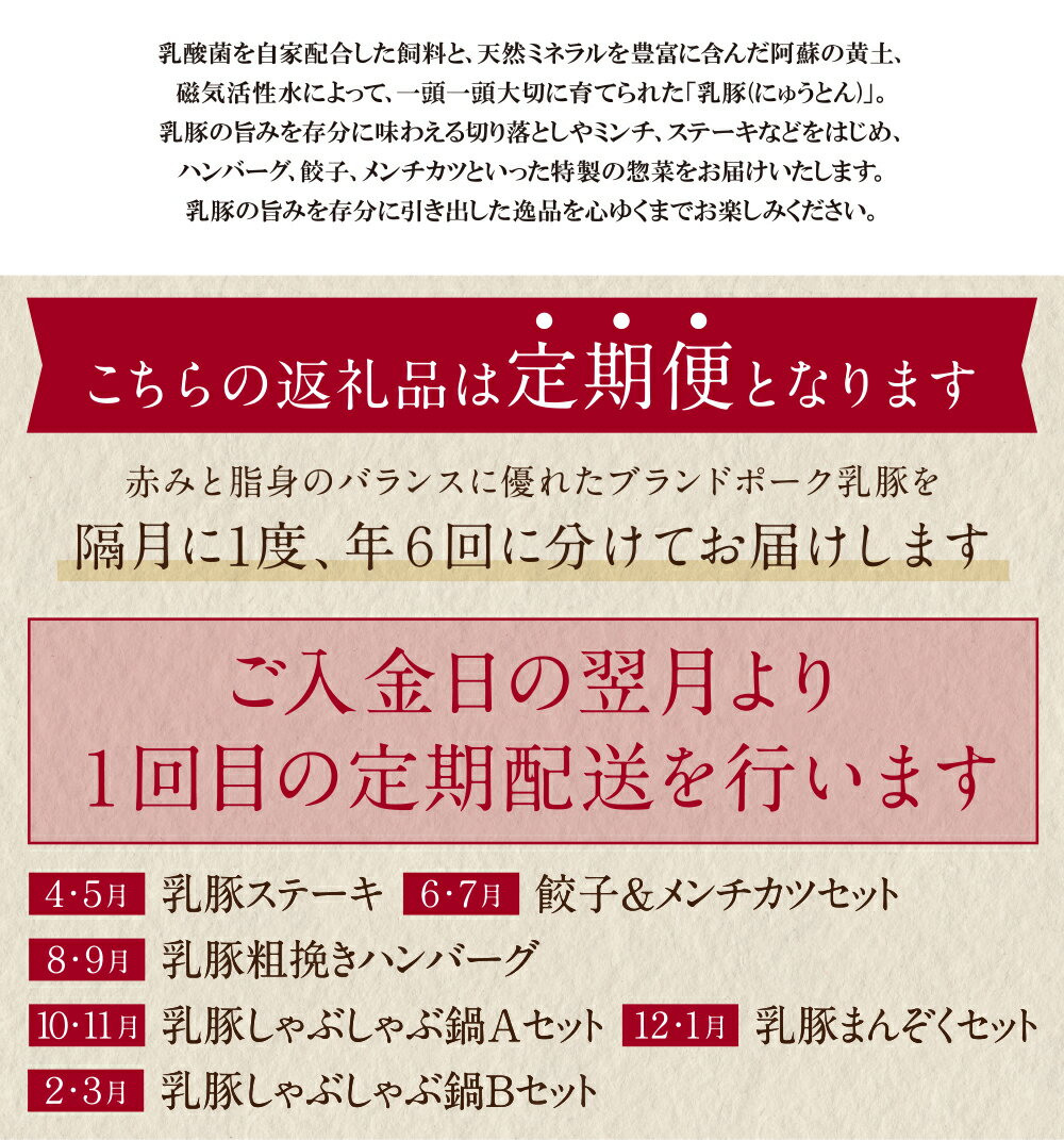 - 【ふるさと納税】 レビューキャンペーン 乳豚バラエティ定期便(隔月・年6回) 豚肉工房うめちく 豚 ブランド肉 セット ギフト 国産 送料無料 《福智町チャンス》