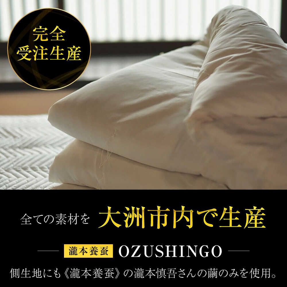 【ふるさと納税】 布団【大洲市産国産繭100%使用】純国産近江真綿(国産シルク)布団 正絹側生地OZUSHINGO 無地白色 クイーンサイズ 掛け布団 かけふとん クイーン 大洲市/国産シルク近江真綿布団専門店[AGBE010]布団 ふとん シルク 寝具 真綿 おすすめ 人気