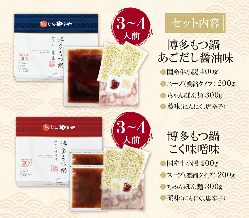 - 【ふるさと納税】 レビューキャンペーン やまや 博多もつ鍋食べ比べセット(醤油・味噌)各3〜4人前