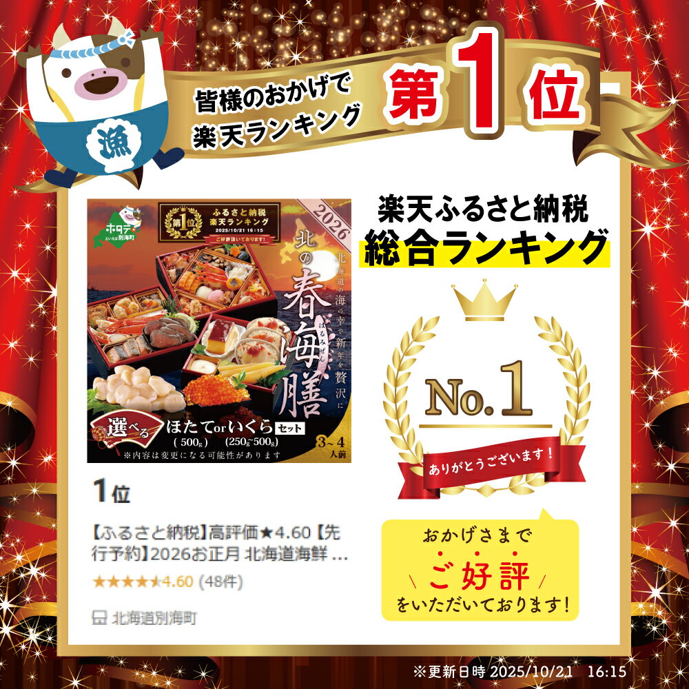 - 【ふるさと納税】高評価★4.60 【先行予約】2026お正月 北海道海鮮 おせち 北の春海膳 (はるみぜん) ほたて または いくら セット ( ふるさと納税 おせち おせちセット 北海道 御節 ふるさと 海鮮 おせち ホタテ いくら ふるさと納税 おせち料理 お節 御節 北海道 別海町 )