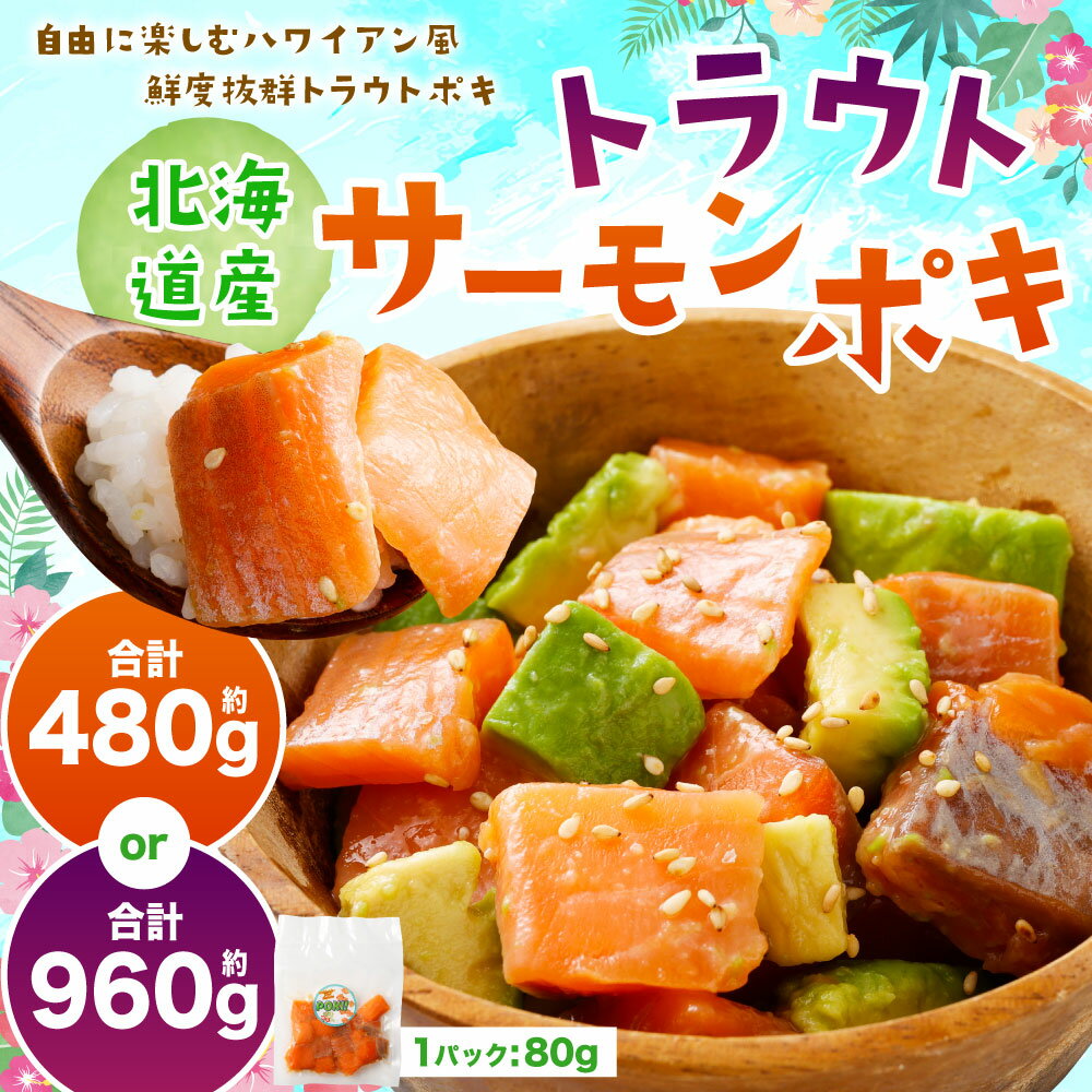 - 【ふるさと納税】北海道産 トラウトサーモンポキ <選べる内容量> 計約480g(80g×6パック)・計約960g(80g×12パック) トラウトポキ 漬け丼の具 サーモン 鮭 シャケ ハワイアン風 海鮮丼 魚介類 惣菜 冷凍 北海道 小樽市 送料無料 【2026年3月下旬より順次発送予定】