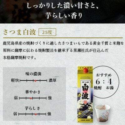 - 【ふるさと納税】【のし付き・お歳暮】【さつま白波・黒白波】25度【1800ml】×3パックずつ 計6パック C7-8【1682569】