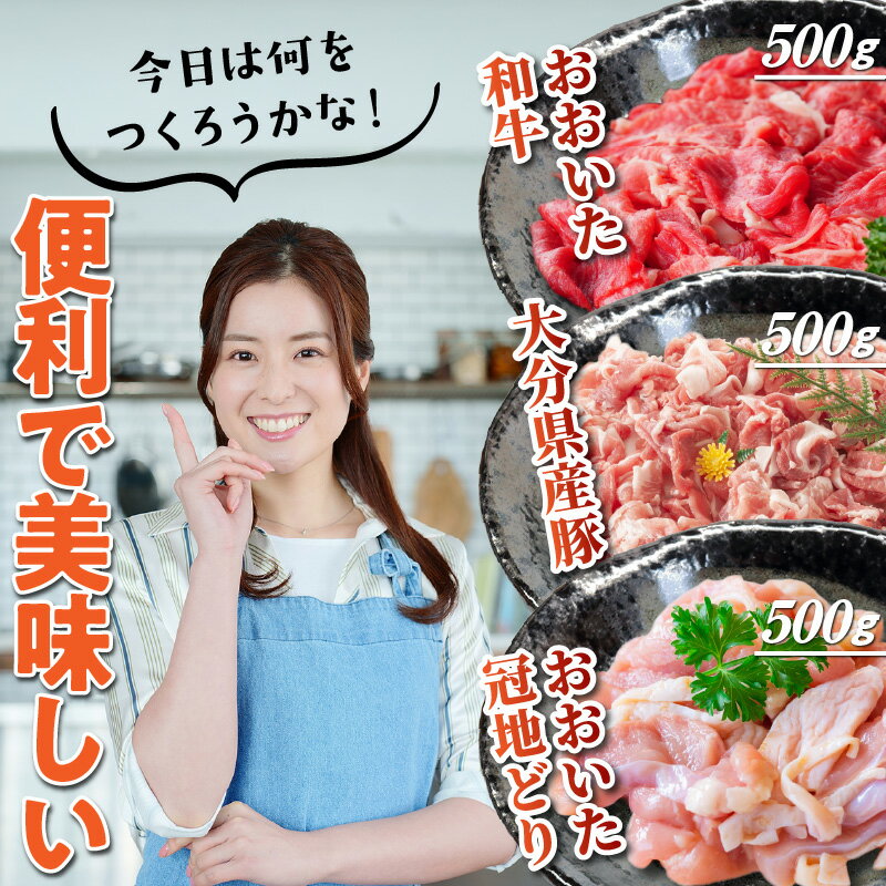 - 【ふるさと納税】毎日の献立に!おおいたの牛・豚・鶏の各500gセット(計1.5kg) 切り落とし 切落し スライス