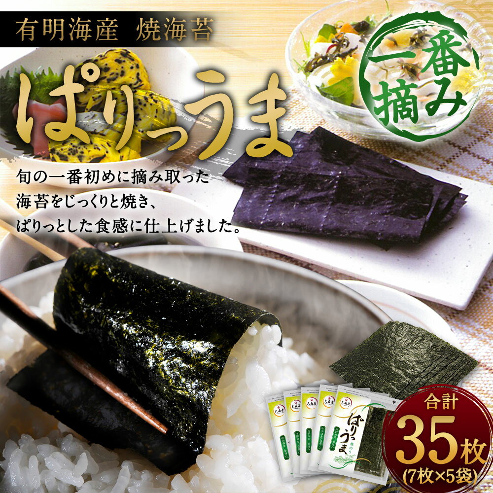 - 【ふるさと納税】ぱりうま 焼のり 35枚 ノリ 海苔 のり 乾のり 有明海 おにぎり 手巻き寿司 ギフト 贈り物 九州 福岡県 大任町 送料無料