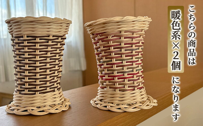 - 【ふるさと納税】籐の手染め手編みペン立て 2個セット ナチュラル [カラーラタン彩都] 雑貨 日用品 文房具 福祉用品