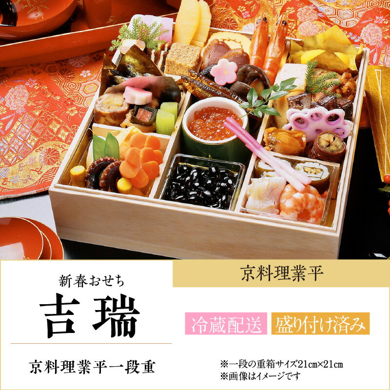 - 【ふるさと納税】\数量限定/ 新春おせち 一段重《吉瑞》【京料理業平】ホテルのおせち 盛り付け済 おせち 正月 新年 料理 お祝い 一段重 和食 和風料理 伝統おせち 伝統料理 日本 伝統 縁起物 御年賀 ホテルクラウンパレス知立 クール便 送料無料