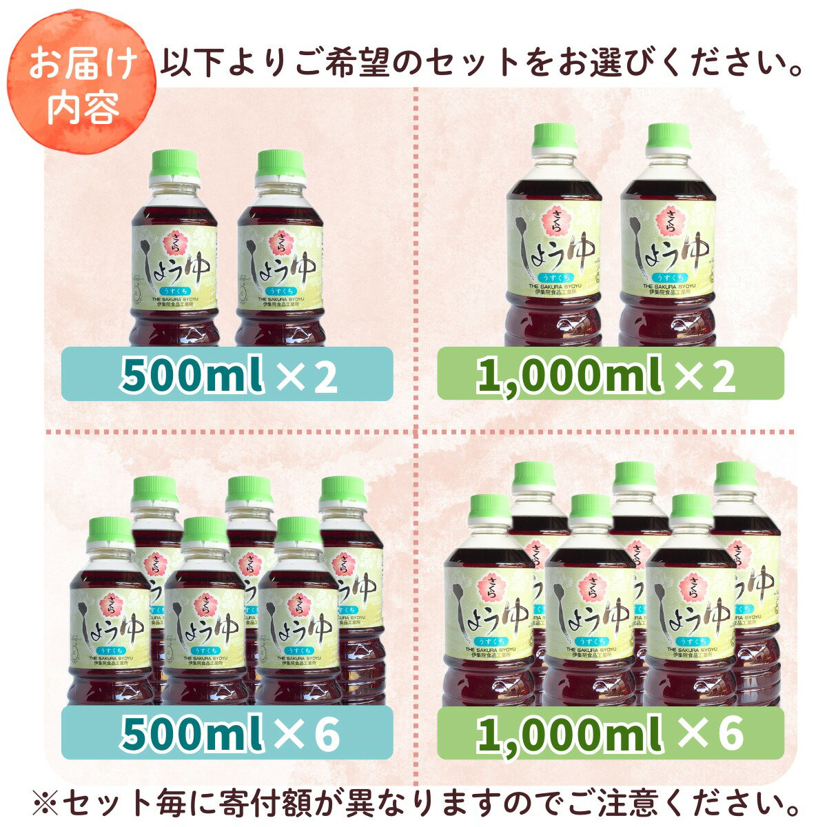 - 【ふるさと納税】<容量・本数が選べる>さくらしょうゆ・うすくち(500ml×2本~6本) (1000ml×2本~6本) 九州 鹿児島 しょうゆ 醤油 しょう油 正油 調味料 淡口 淡口醤油 薄口 大豆 だいず たまごかけご飯 うすくち醤油 5000円 【伊集院食品工業所】