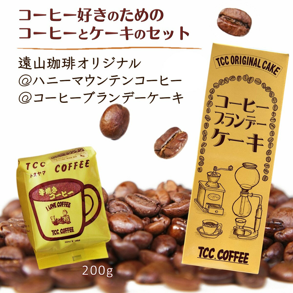 【ふるさと納税】コーヒー&ケーキセット コーヒー 豆/粉 200g コーヒーブランデーケーキ 1個 自家焙煎 天日干しコーヒー パウンドケーキ 焼き菓子 遠山珈琲