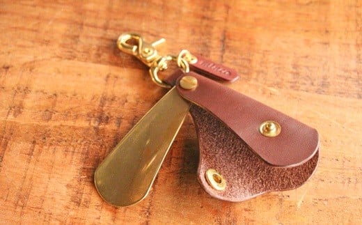 - 【minca】栃木レザーの真鍮靴ベラキーホルダー/シューホーン01/オリーブ 641【雑貨 日用品 人気 おすすめ 】