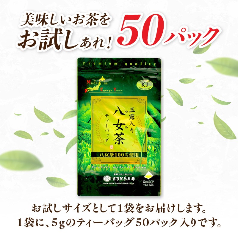 - 大型倉庫販売店で人気の古賀製茶本舗玉露入り八女茶ティーバッグ お試し50個入り 八女茶 お茶 茶 緑茶 八女 八女茶 古賀の八女茶 玉露 ティーバッグ 水出し 老舗 伝統 匠の技 厳選茶葉 大型倉庫店 文政2年 焙烙 安心 品質 日本茶 冷茶 急須 福岡県 八女市