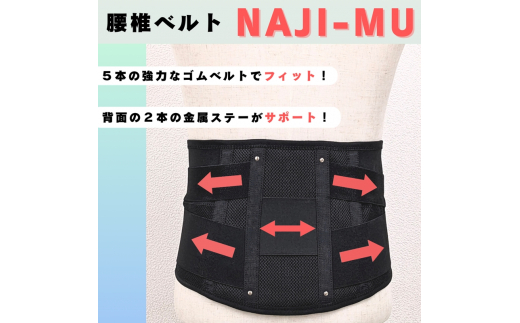 - 腰椎ベルトNAJI-MU 黒色 L|腰痛 サポーター 骨盤 腰 改善 メッシュ【0867】