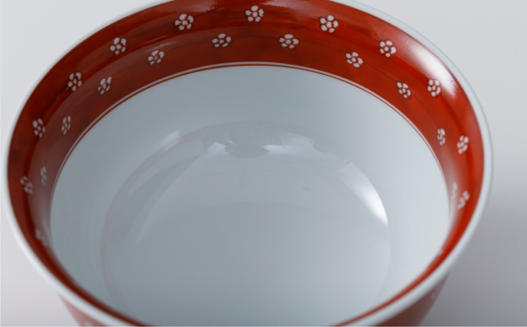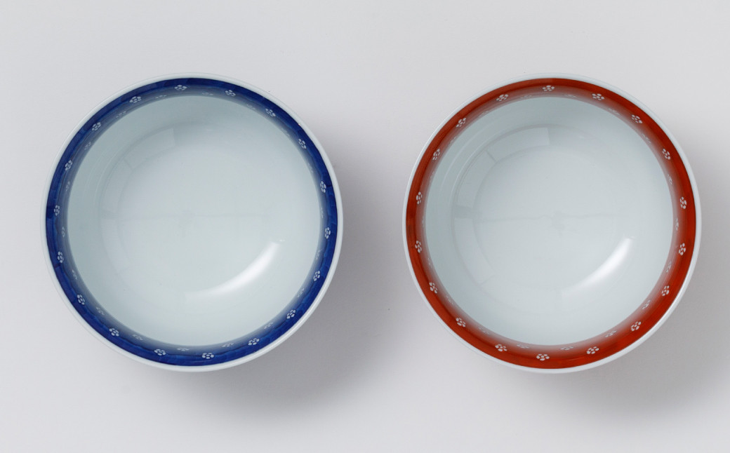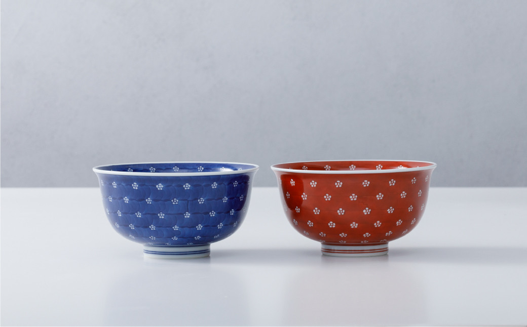 - 【源右衛門窯】有田焼/赤絵・染付梅地紋麺鉢2客セット