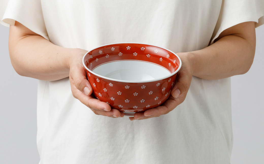 【源右衛門窯】有田焼/赤絵・染付梅地紋麺鉢2客セット