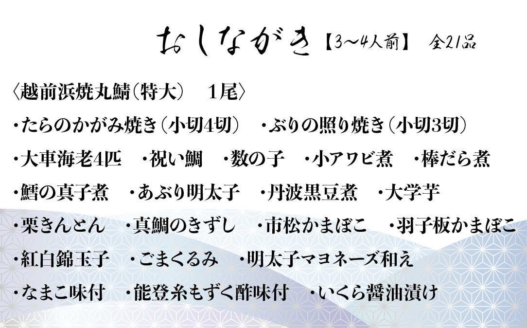 - 【限定5個】12月31日着 越前からお届け「鮮魚屋さんの酒肴オードブル」おせち 越前浜焼丸鯖(特大)付き(3〜4人前)