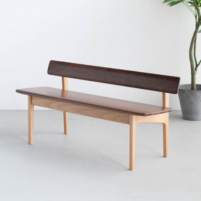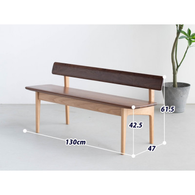 - ダイニングベンチ OTTE W130 オーク&ウォールナット無垢 ロータイプ 大川家具(福岡県)【1368595】