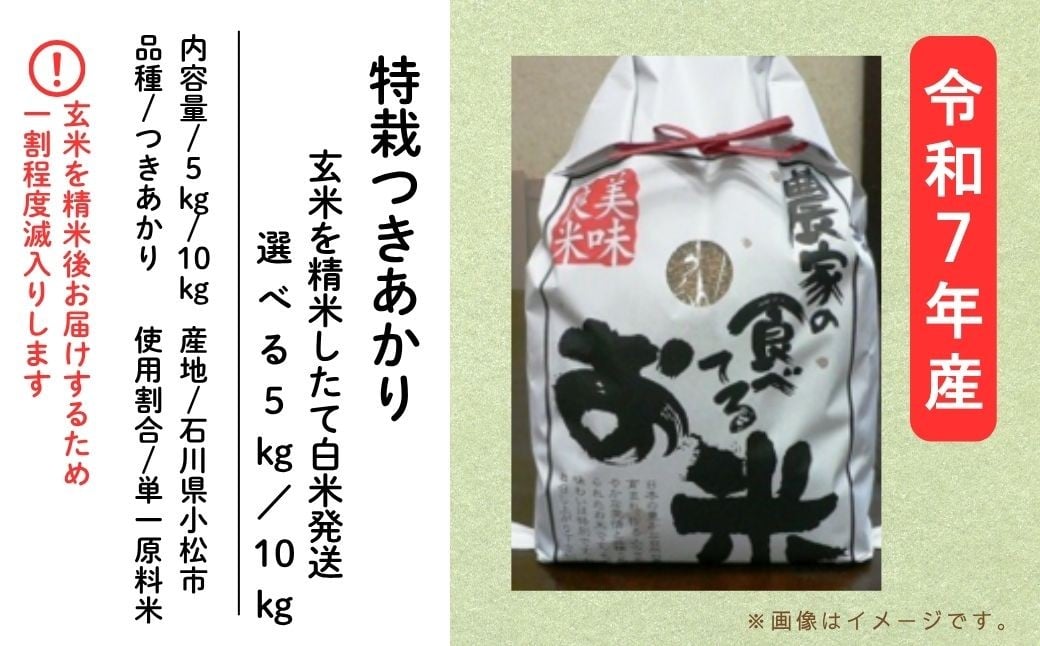 特栽つきあかり玄米 選べる5kg/10㎏ 精米したて白米発送 石川県 小松市 【のむら農産】