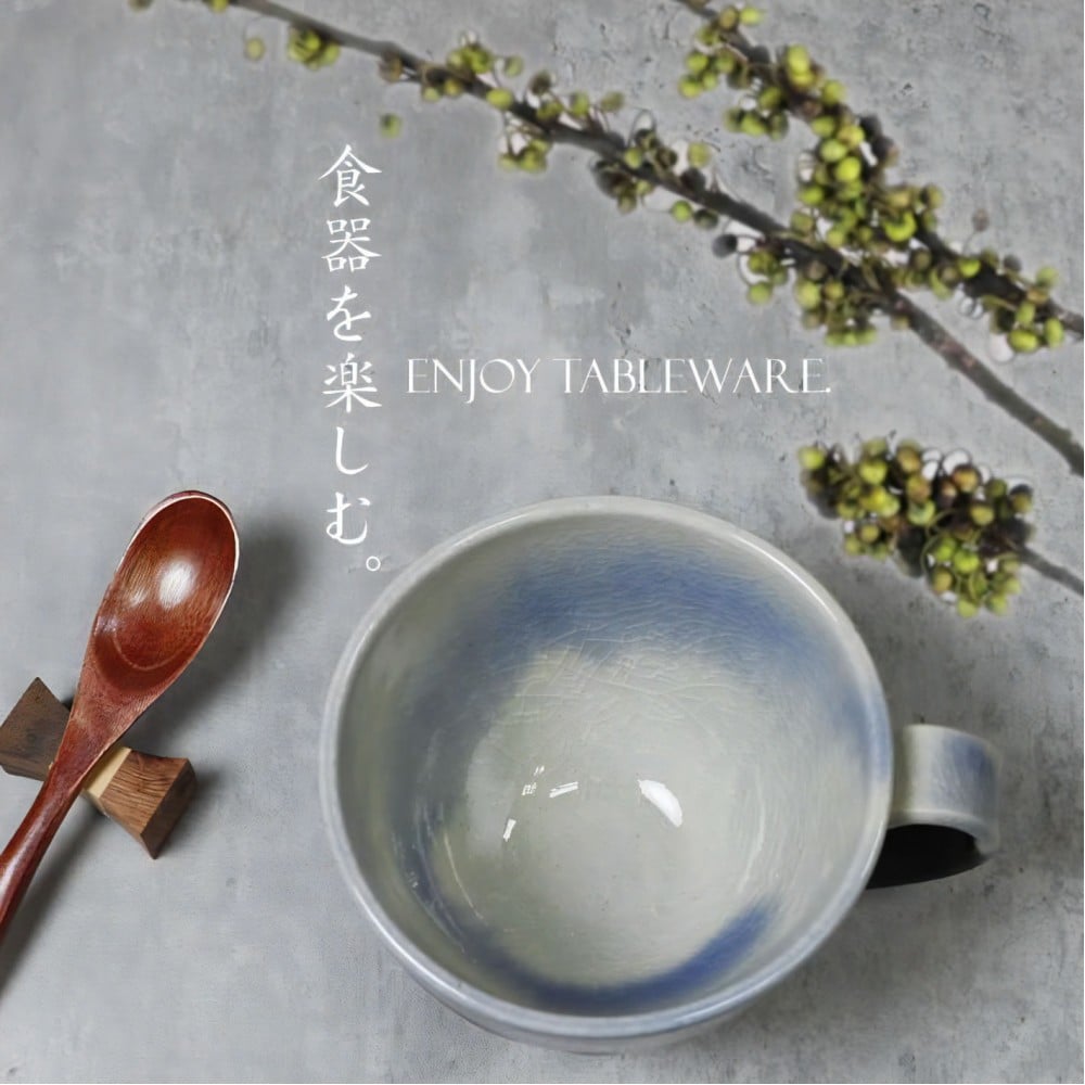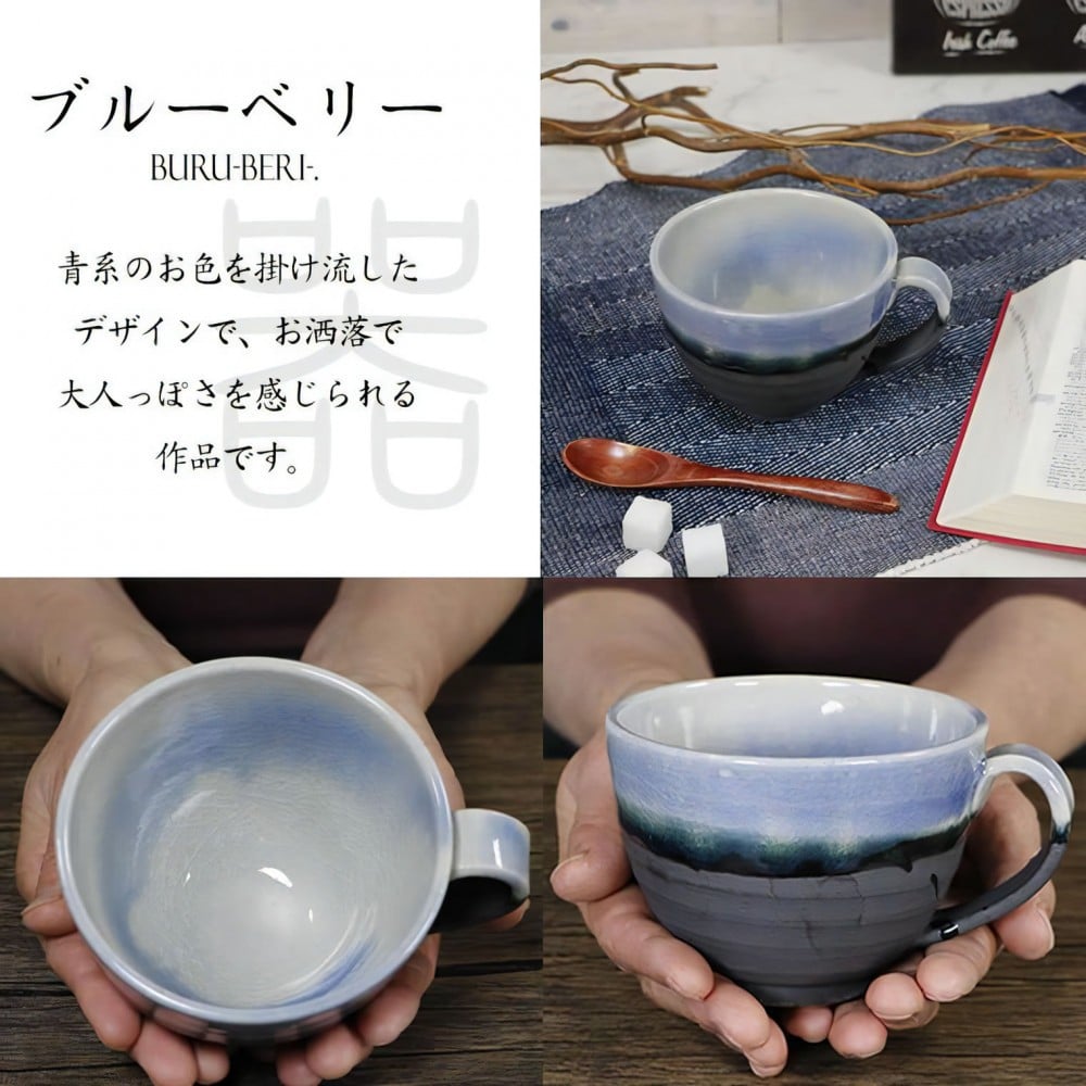 - 信楽焼 陶器製 丸型スープカップ (ブルーベリー)