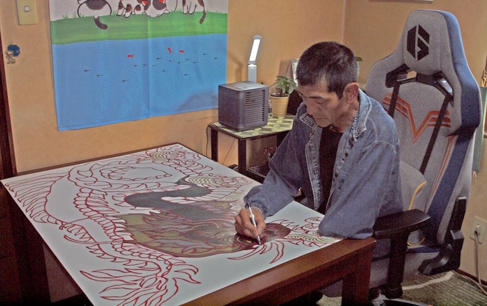 - 絆(きずな)|三宅剛 ペン画アート 【原画/親子の象・優しさと生命のつながり】