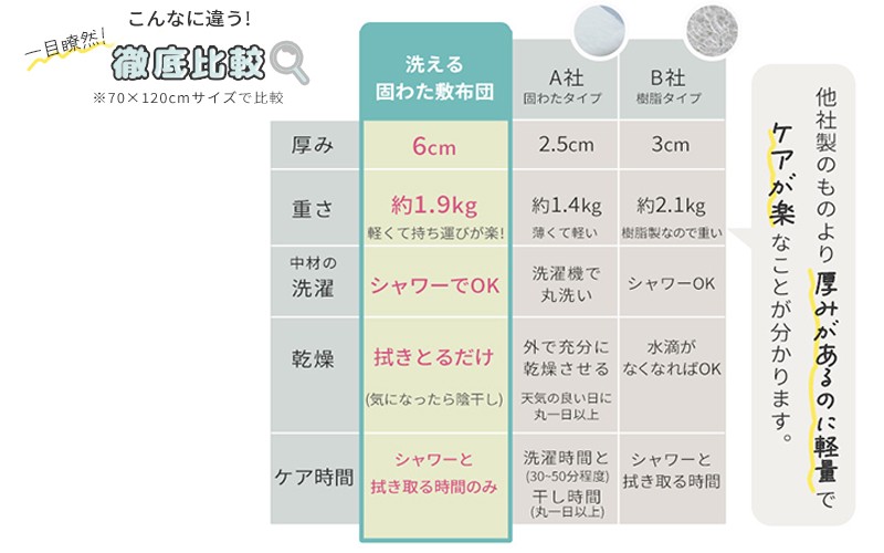 - 丸ごと水洗いできる 固わた敷布団マットレス 3サイズ(ミニ・スリム・ベビー)[C-01107]