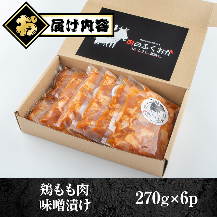 A79005 焼肉用鶏もも自家製味噌ダレ味付き(計1.62kg・270g×6) 鹿児島 鶏肉 お肉 味噌ダレ たれ漬け まぜまぜ 味付け 味噌 みそ おかず 焼肉 焼きそば 冷凍【肉のふくおか】