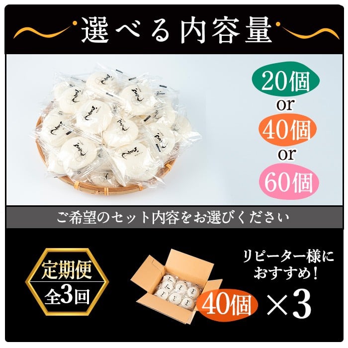- <個数・配送回数が選べる!>【訳あり】鹿児島の郷土菓子かるかん饅頭(20~60個/定期便 全3回計120個) 鹿児島県産 和菓子 かるかん【津曲食品】
