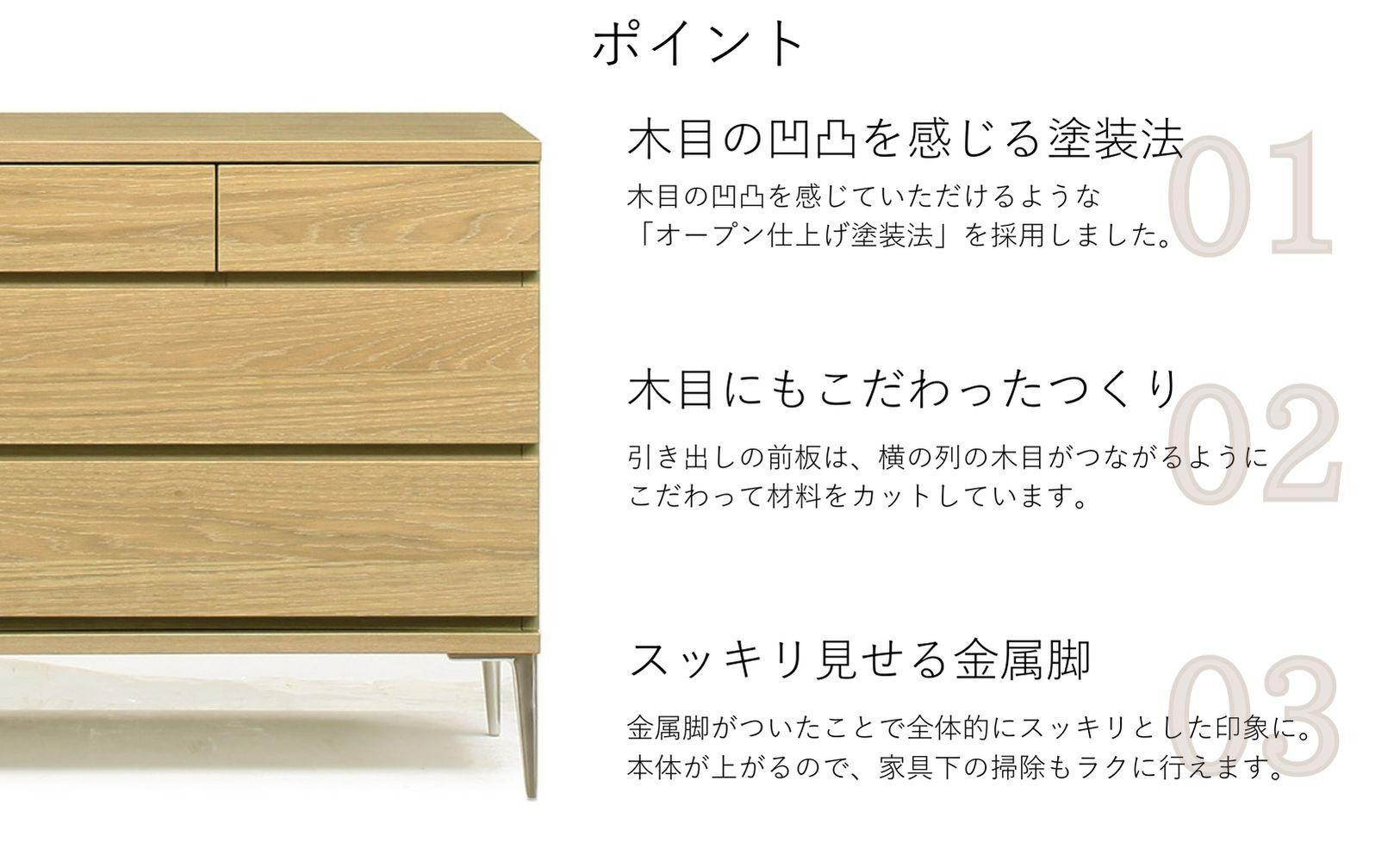 【カラー選択可】大川家具 開梱設置 幅90cm 3段 チェスト モデルノD 古賀清木工