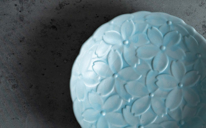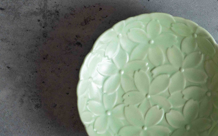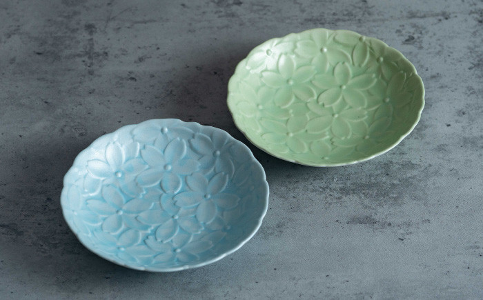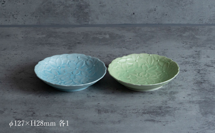 - 【日常に和の優雅さを】有田焼 mint. 桜彫り 12.7cm 深小皿 2枚セット (ブルー・グリーン)【金照堂】小皿 小鉢 副菜皿 副菜鉢 菓子皿 食器 皿 磁器 和食器 A25-638