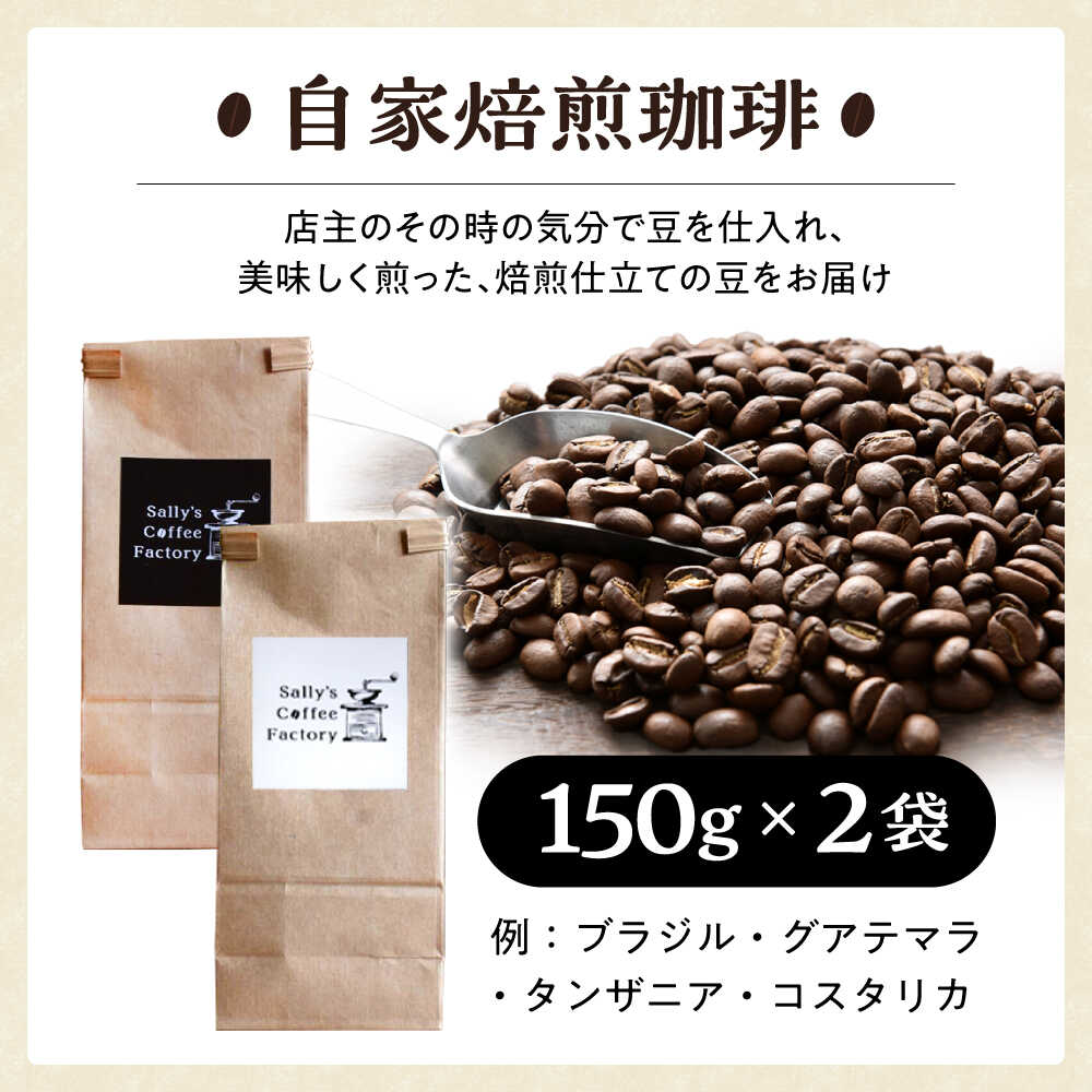 【ふるさと納税】自家焙煎珈琲 300g(150g×2袋)【Sally's Coffee Factory】[OCZ002] / コーヒー おすすめ 珈琲豆 コーヒー豆 コーヒー粉 飲みやすい 雑味なし