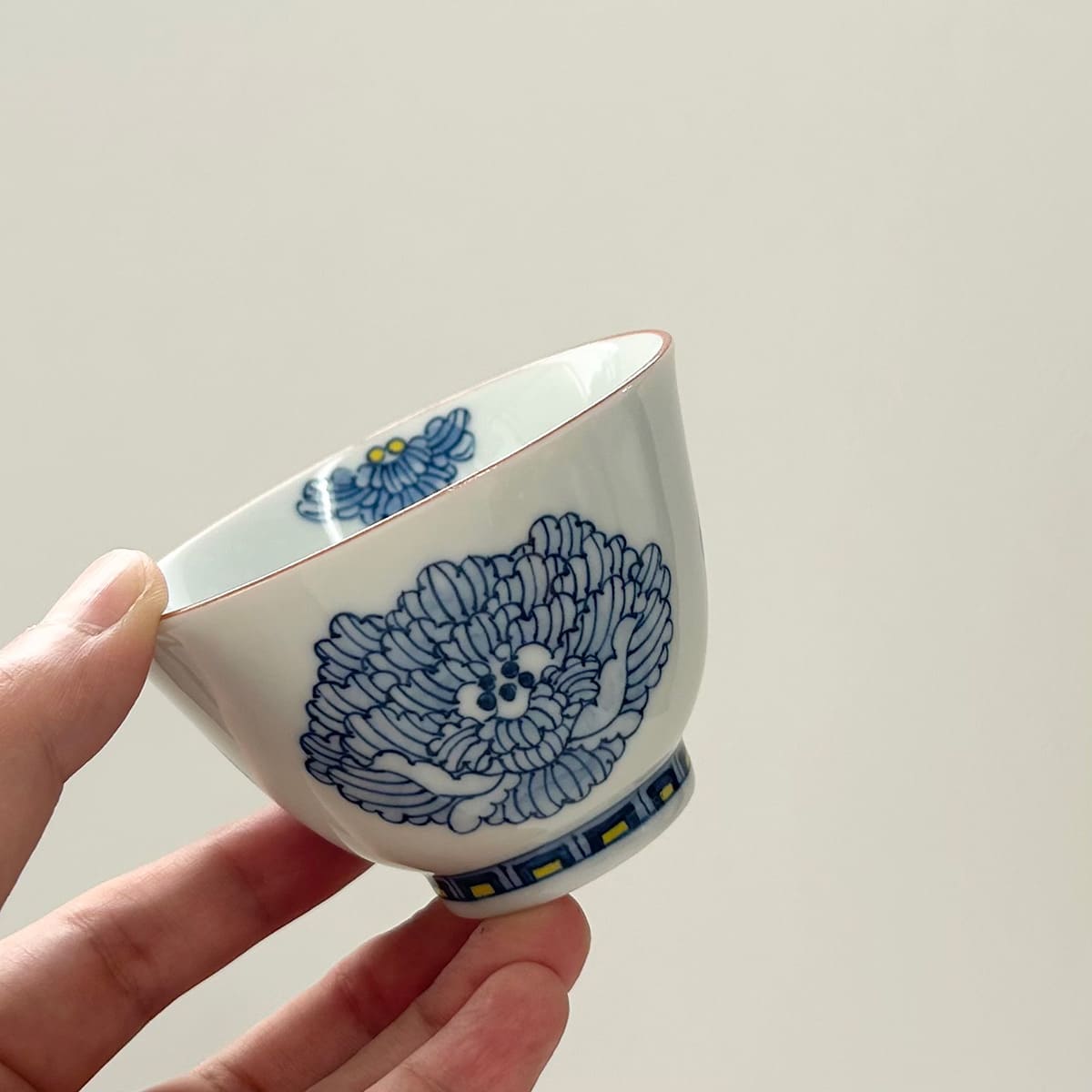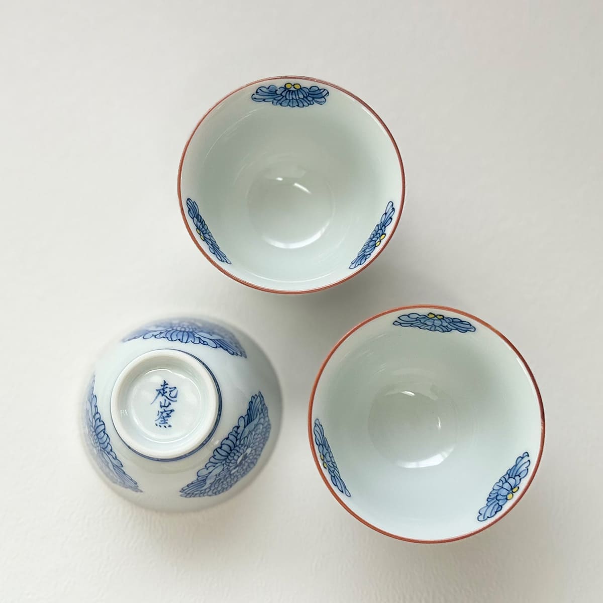 - 【ふるさと納税】有田焼 手描き ボタン柄 煎茶碗【起山窯】食器 器 うつわ 湯呑 湯のみ 染付 A17-13