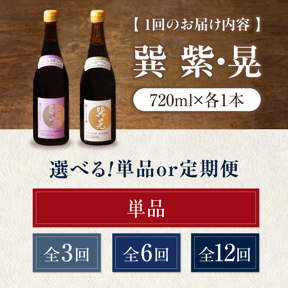 【ふるさと納税】醤油【単品or選べる定期便】天然丸大豆醤油巽セット(紫 晃)720ml×各1 計2本 だし醤油 万能調味料 本醸造 天然醸造 丸大豆 和食 煮物 うどん 調味料 醤油 しょうゆ セット 食べ比べ 国産 料理 おすすめ 人気 愛媛県大洲市/株式会社梶田商店[AGBB037]