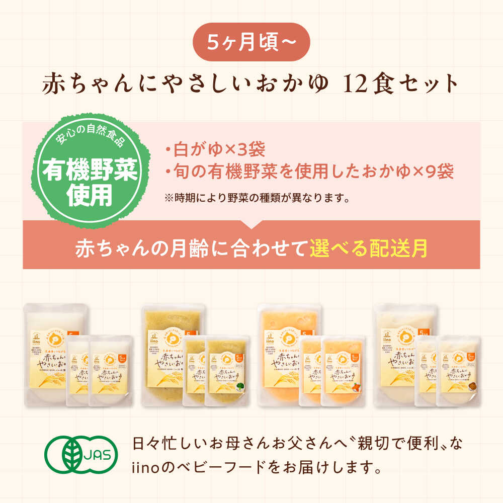 - 【ふるさと納税】離乳食【選べる配送月】離乳食 5ヶ月頃からの『赤ちゃんにやさしいおかゆ』計12袋セット 大洲市/iino assemble[AGAA005] あかちゃん 赤ちゃん ベビーフード 赤ちゃん用品 お食い初め 出産祝い セット プレゼント 国産 おすすめ 人気 贈答 ギフト