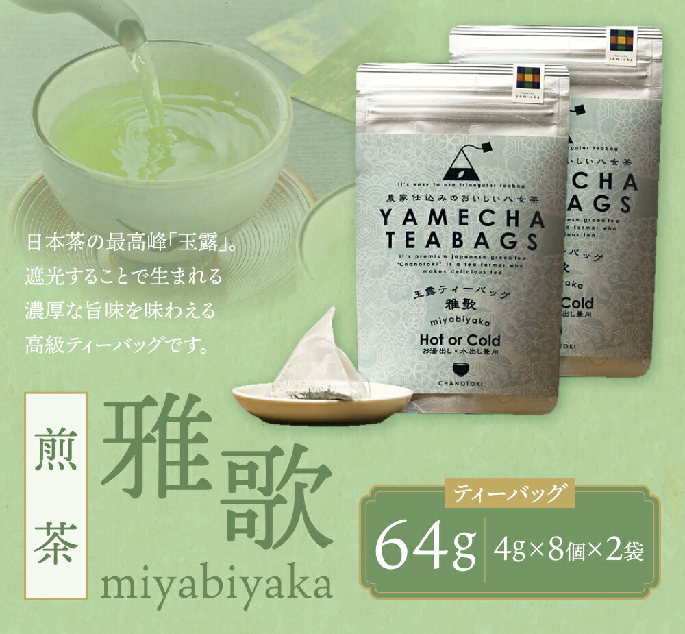 - 【ふるさと納税】 レビューキャンペーン 原田茶園 玉露ティーバッグ 雅歌64g 煎茶 八女茶 お茶 日本茶 お湯 水出し マイボトル アウトドア お試し