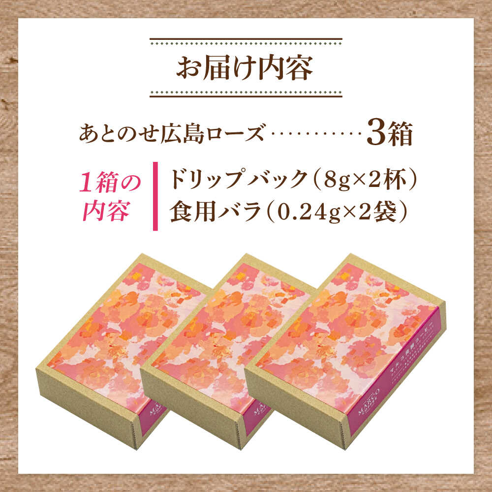 - 【ふるさと納税】コーヒー マルコ発酵コーヒー あとのせ広島ローズ(2杯分)×3箱 おすすめ 人気 フレーバーコーヒー 薔薇の香り ギフト プレゼント プチギフト おしゃれ 個包装 珈琲 ドリップコーヒー ドリップバッグ 10000円 1万円 広島県福山市/マルコ珈琲商会[BABE001]