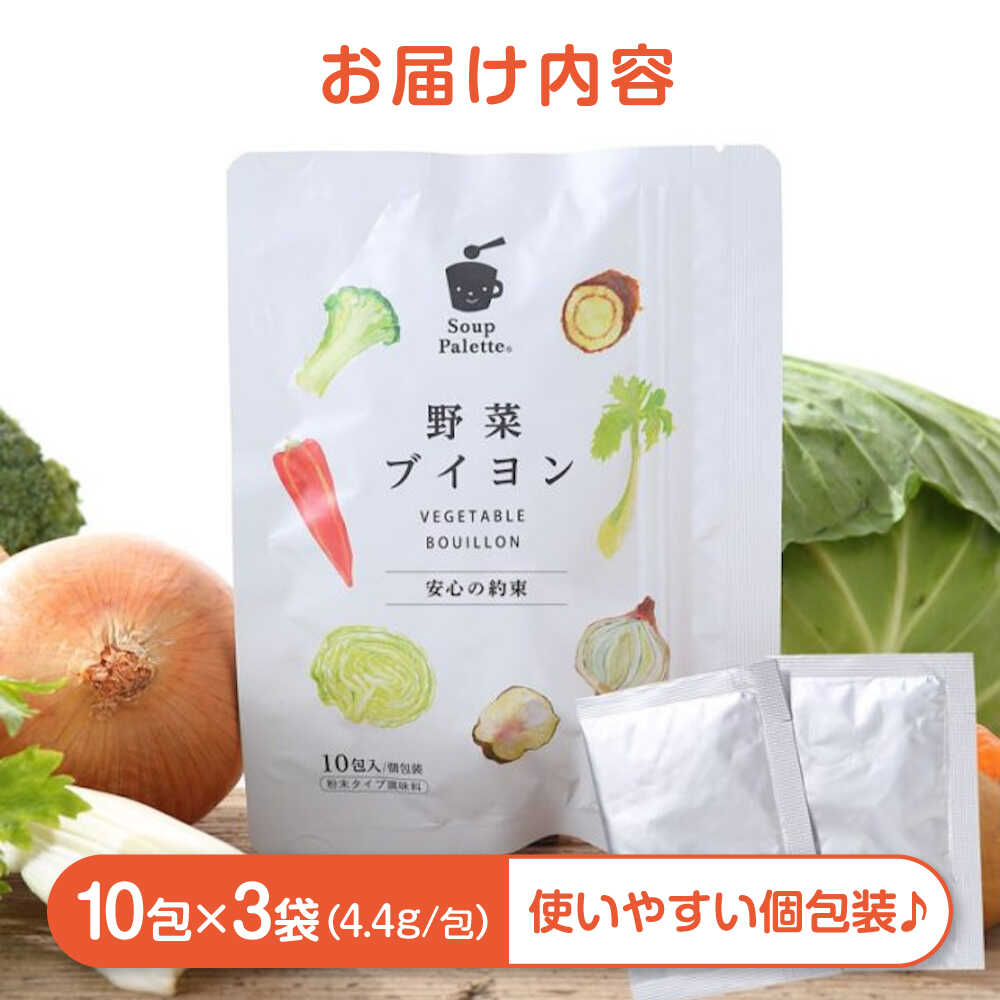 【ふるさと納税】スープ 野菜ブイヨン3袋 スープ 野菜 粉末 出汁 国産 コンソメ おいしい おすすめ 人気 美味しい 調味料 離乳食 減塩 時短 簡単調理 ポトフ リゾット 料理 万能調味料 送料無料 ベビーフード 国産野菜 広島県福山市/こだま食品株式会社[BAAT001]