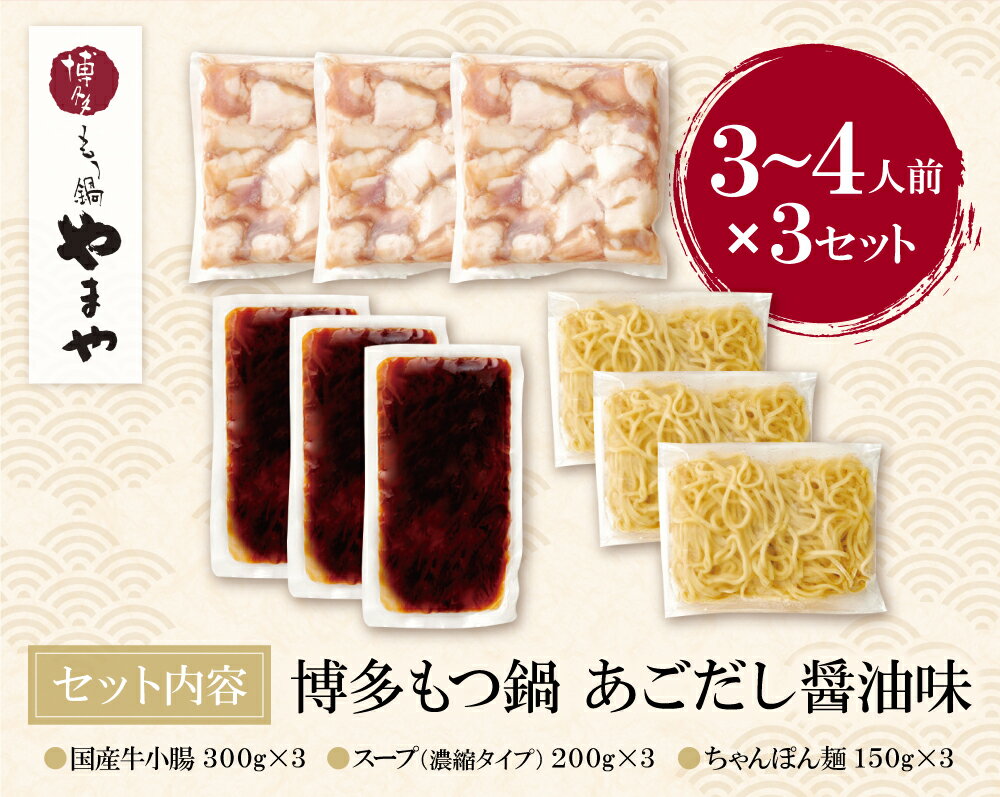 【ふるさと納税】 レビューキャンペーン やまや ぷるっぷる♪博多もつ鍋セット(あごだし醤油味)3〜4人前×3個セット 特産品 国産牛 モツ鍋 大容量 冷凍 送料無料 福岡県