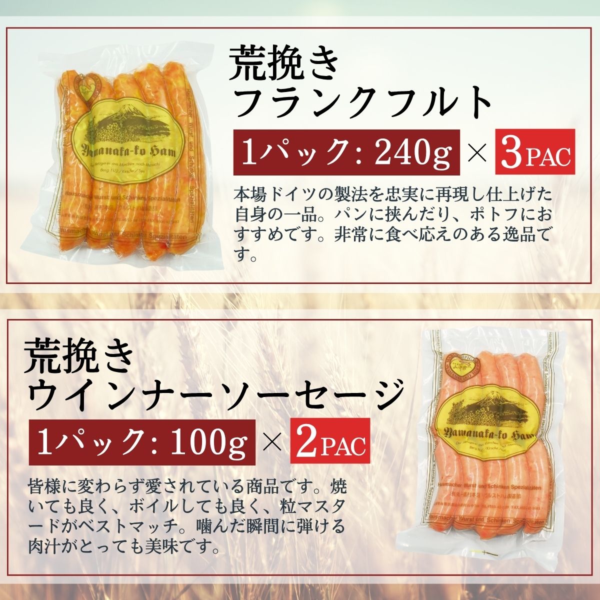 - 【ふるさと納税】粗挽き ウインナー フランクフルト セット 合計1.1kg以上 / ドイツ コンテスト 金賞受賞 ソーセージ 詰め合わせ 加工品 肉加工品 ギフト 贈り物 贈答品 メーカー ブランド 山中湖ハム お歳暮 送料無料 お歳暮 お年賀